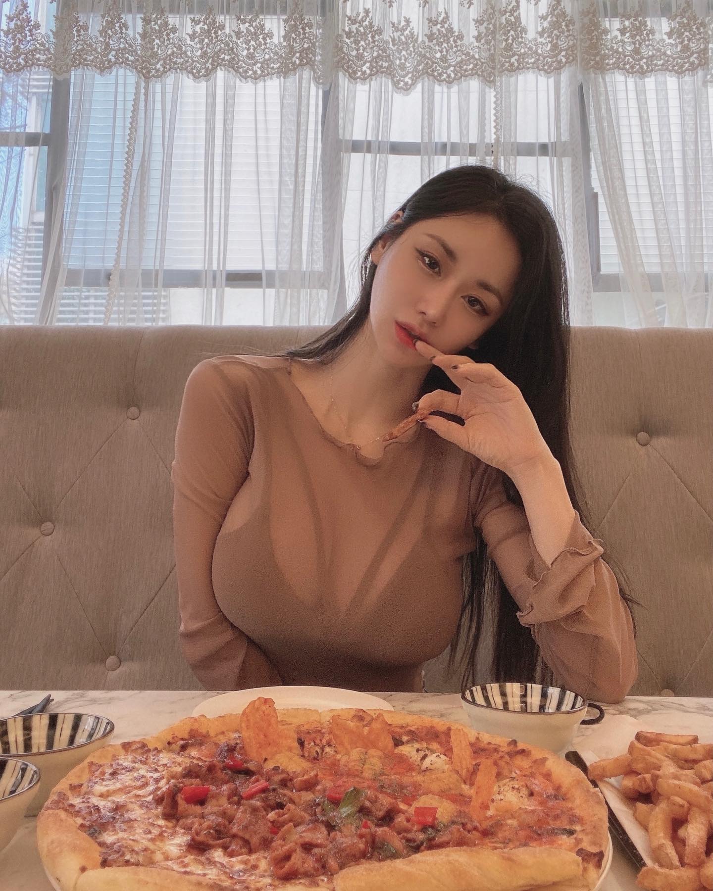 특유의 볼륨감 넘치는 몸매를 과시했습니다.