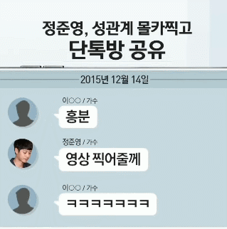 2016년 한 여성이 정준영이 자신과의 성관계 중에 몰래 몸을 촬영했다고 고소했습니다. 정준영은 평소에도 다른 여자와 관계하는 것을 몰래 촬영하거나 마약 먹이고 집단 성폭행, 강간등을 하고 살았습니다.