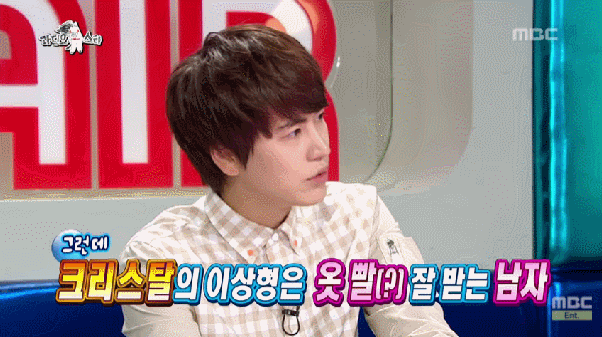 당시 방송에서 MC 규현은 크리스탈에게 "옷빨 잘 받는 남자가 이상형이라고 하던데,