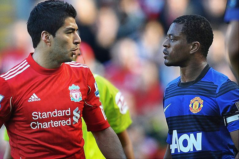6. 2011년 당시 맨체스터 유나이티드에서 뛰던 에브라가 리버풀의 공격수 수아레스에게