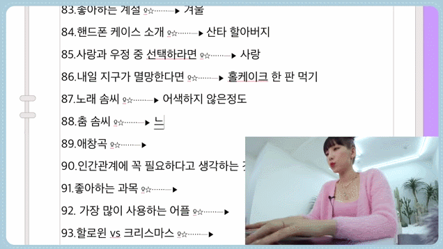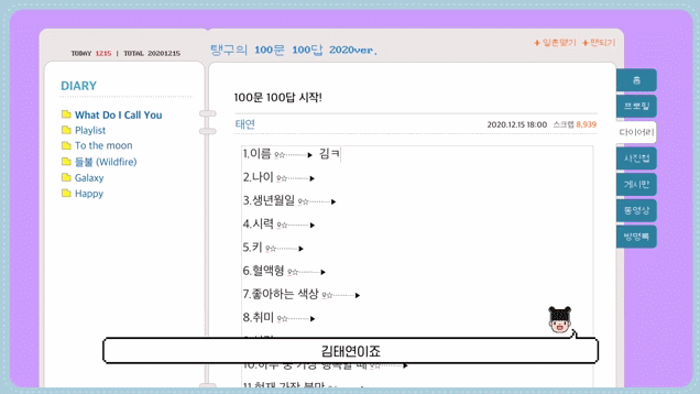 간단이라고는 하지만 조금 내용이 많습니다. 태연 팬이라면 꼭 봐야 될 Q&A겠죠?