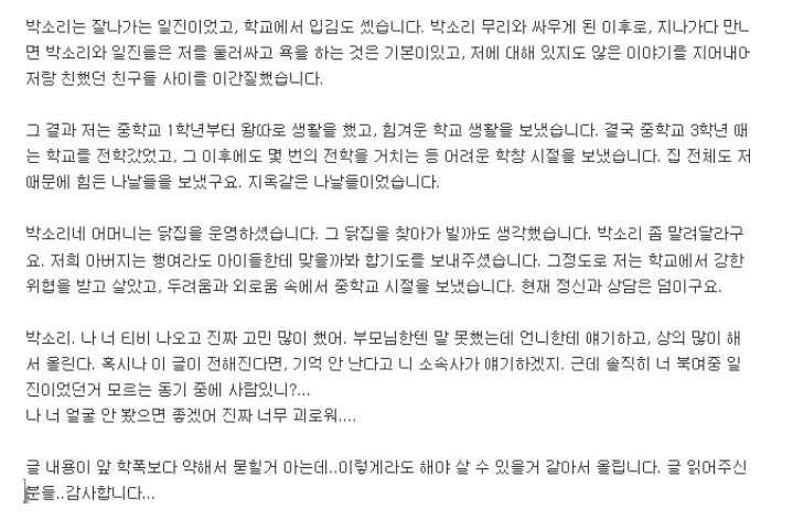 학교 폭력 피해자의 증언