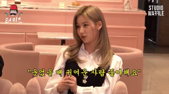 2021년 11월 19일 스튜디오 와플 유튜브 채널에는 '트둥이 출연에 입꼬리 우주정거장까지 올라간 터키둥이 이용진... 트와이스 편'이라는 영상이 업로드됐는 데요. 사나는 "웃었을 때 귀여운 사람 좋아한다"라며, "웃었을 때 동물같은 느낌이 나는 사람? 웃음소리가 특이한 것도 좋을 것 같다"고 말했습니다.