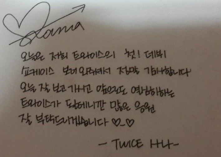 심지어 한글 필기체는 수준급이라서 한글 캘리그라피에 도전해도 될 정도입니다. 사나의 한국어 단어장에는 뇌종양, 중환자 같은 의학용어도 보일 정도로 사나는 어려운 단어까지 열심히 공부했다고 합니다. 얼마나 열심히 공부했으면 사나는 꿈을 꿀때도 한국어로 꿈다고 합니다.