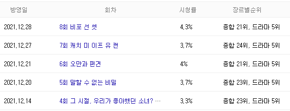 그 해 우리는 12월 6일부터 방송으로, 현재 높은 시청률을 자랑하고 있습니다.