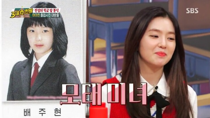 아이린은 학창시절부터 미모로 유명세를 떨쳤다고 합니다. 아이린의 고등학교 졸업사진을 본 김신영은 아이린에게 "이때가 대구를 호령하던 그때냐?"라고 질문하자 아이린은 신입생 때는 2,3학년 선배들과 배치고사를 보러 온 옆 학교 남학생들이 자신의 얼굴을 보러왔다고 대답했습니다.